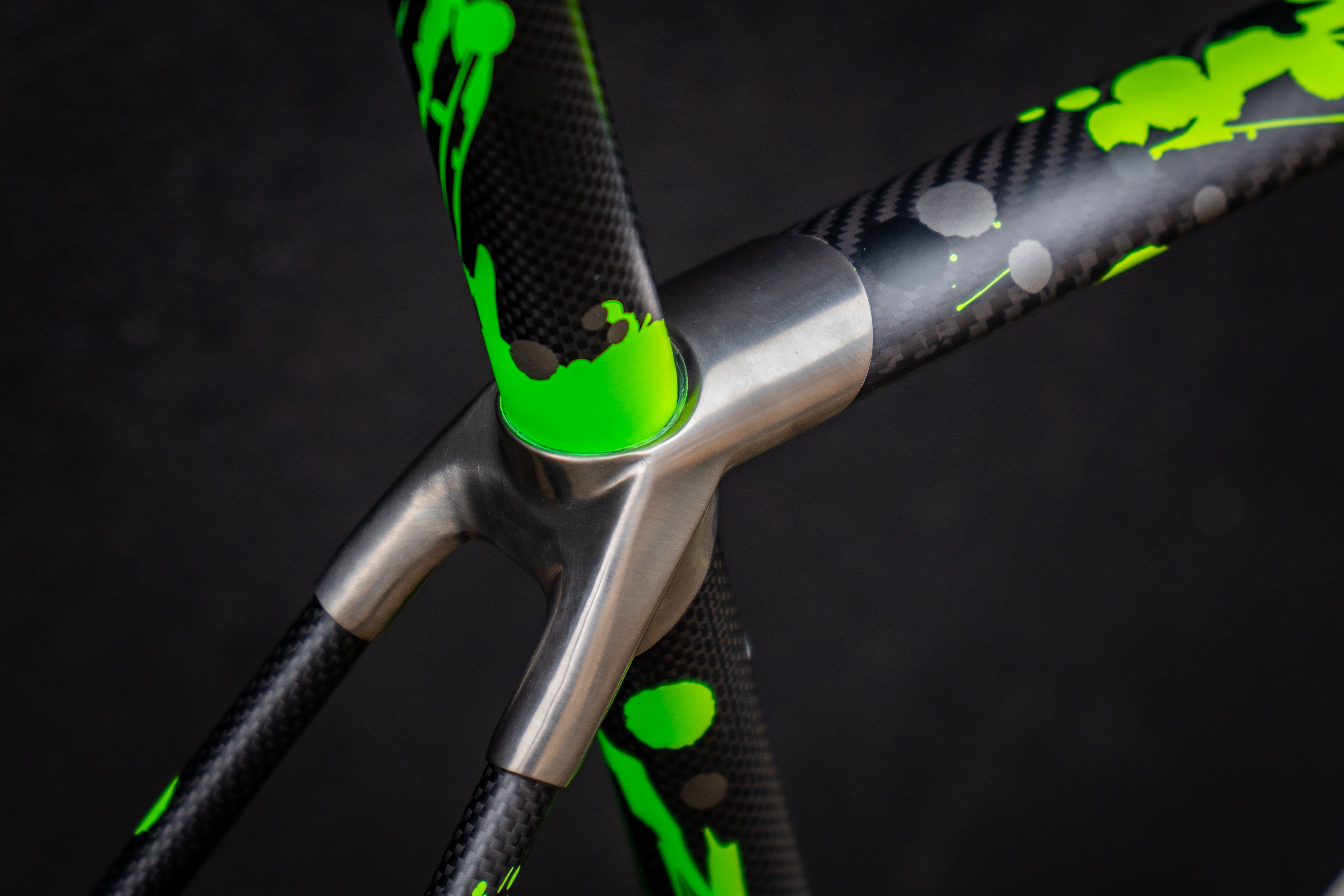 - 00Kev features 3D-printed titanium lug with carbon tube construction. This combo lets us tune ride feel, stiffness, and weight like never before. The carbon tubes are bonded to the titanium using a high-performance aerospace adhesive, chosen for its strength, chemical resistance, and ability to operate across a wide range of temperatures without affecting the bond strength - which is important in the Australian climate