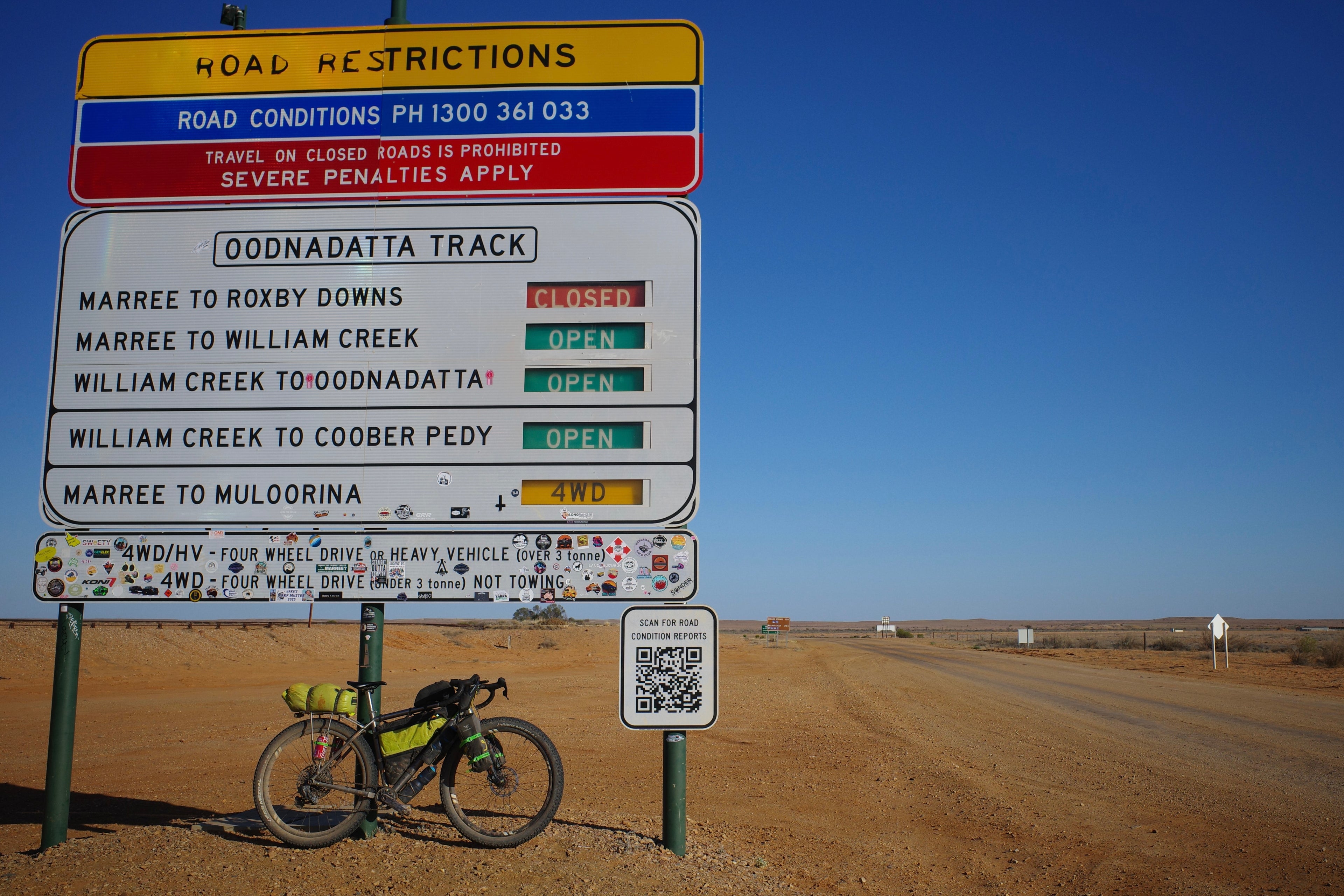 It was a 205k stretch to Oodnadatta and I was excited. After a cold toastie and a NoDoze caffeine tablet, I was off past the “Good luck with the roads” sign and out into the pre-dawn desert air. I love this time. Dawn light has a special magic. I remember to do second breakfast and suncream before fly time begins at about 9. A few days later, they seemed to have won when I dangerously pulled out the emergency molten Cherry Ripe in the last 25km of Mulga Park Road. Or did they really win? I surely swallowed a few with that snack!