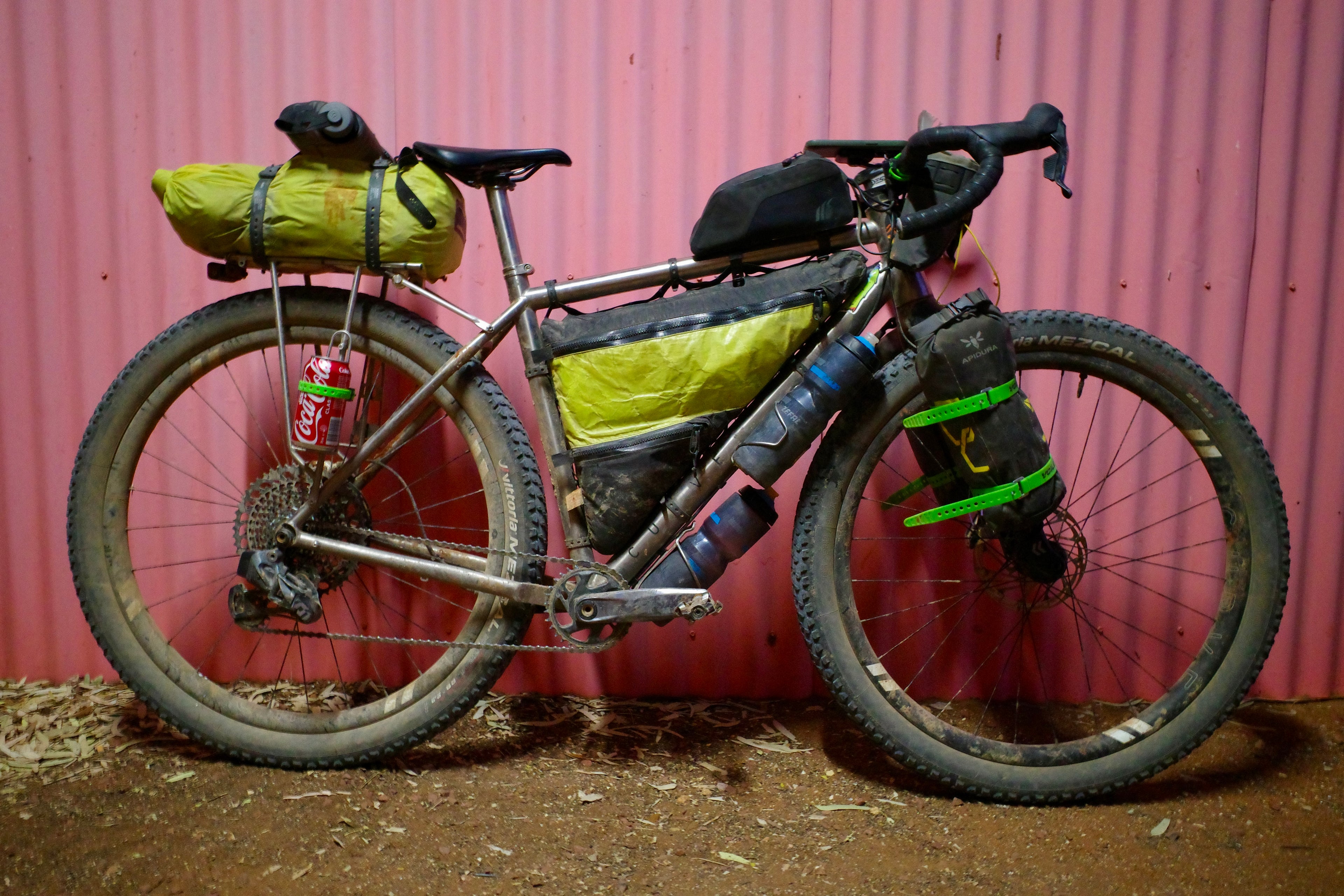 My much loved now 5yr old Curve GMX+, Gerty, is a size small. The picture here is just as I was leaving Oodnadattta fully stocked up with water and food. Gerty has Curve’s 29” Wider Carbon Dirt Hoops and an SP Dynamo, SRAM Red shifters and brakes, a 32 tooth chainring with a SRAM X01 derailleur and 10-52 rear cassette. 2 spare AXS batteries and zero issues. I did not regret the extra push required to spin 2.6” Mezcals. No punctures. My 50cm Walmer bars hold a computer, lights, feed bag and phone. Nothing else because I like to have room to wave my hands about. Stew from @riderfitcc is the magician that sorted all the measurements.