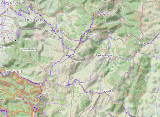 The “heat” generated by my activities in the Adelaide Hills in purple, with unpaved surfaces highlighted in orange.
