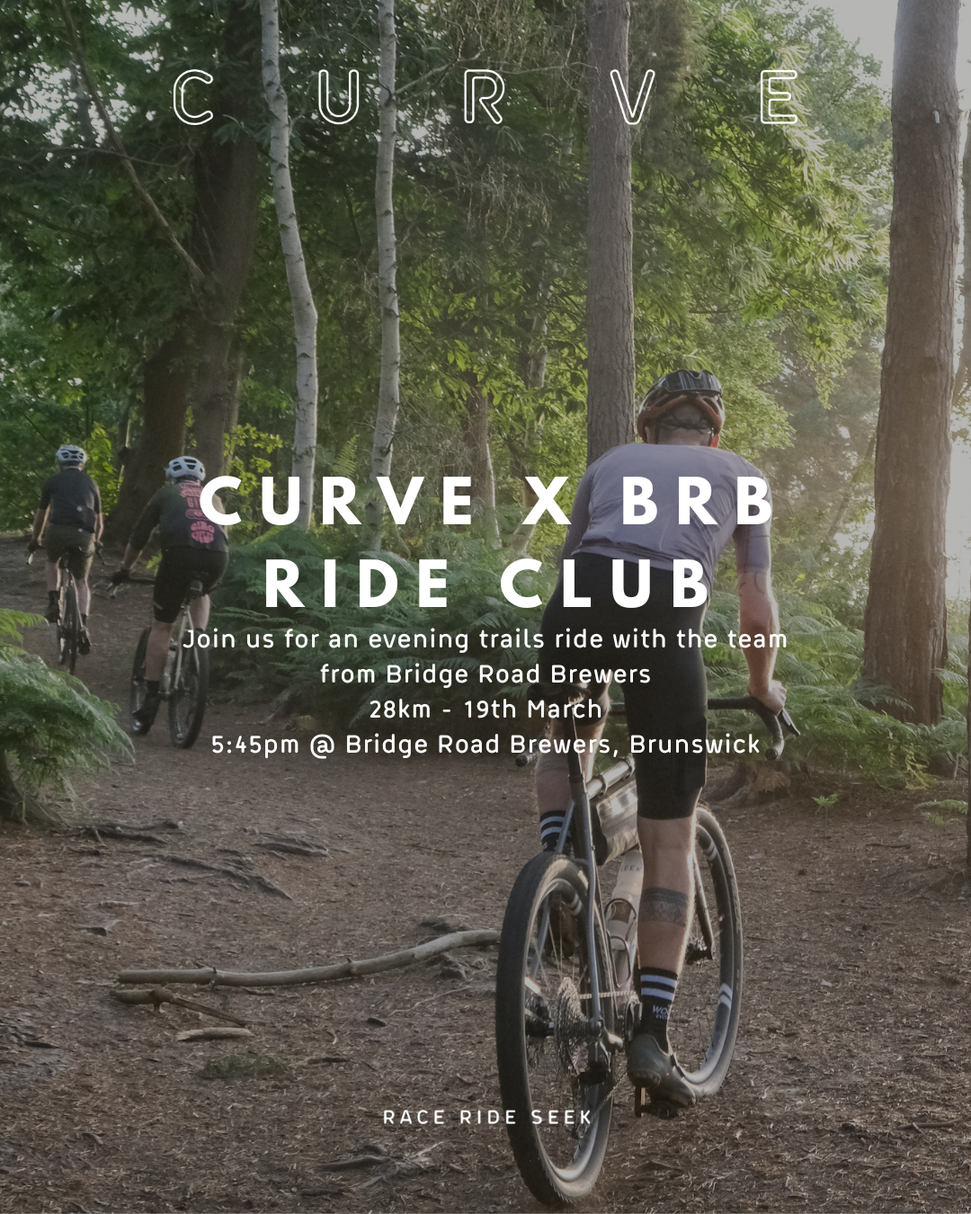 Curve will run this ride on March 19th 2026 alongside the team at Bridge Road Brewers, Brunswick. Join us for an social evening trails cruise followed by some recovery beverages.
