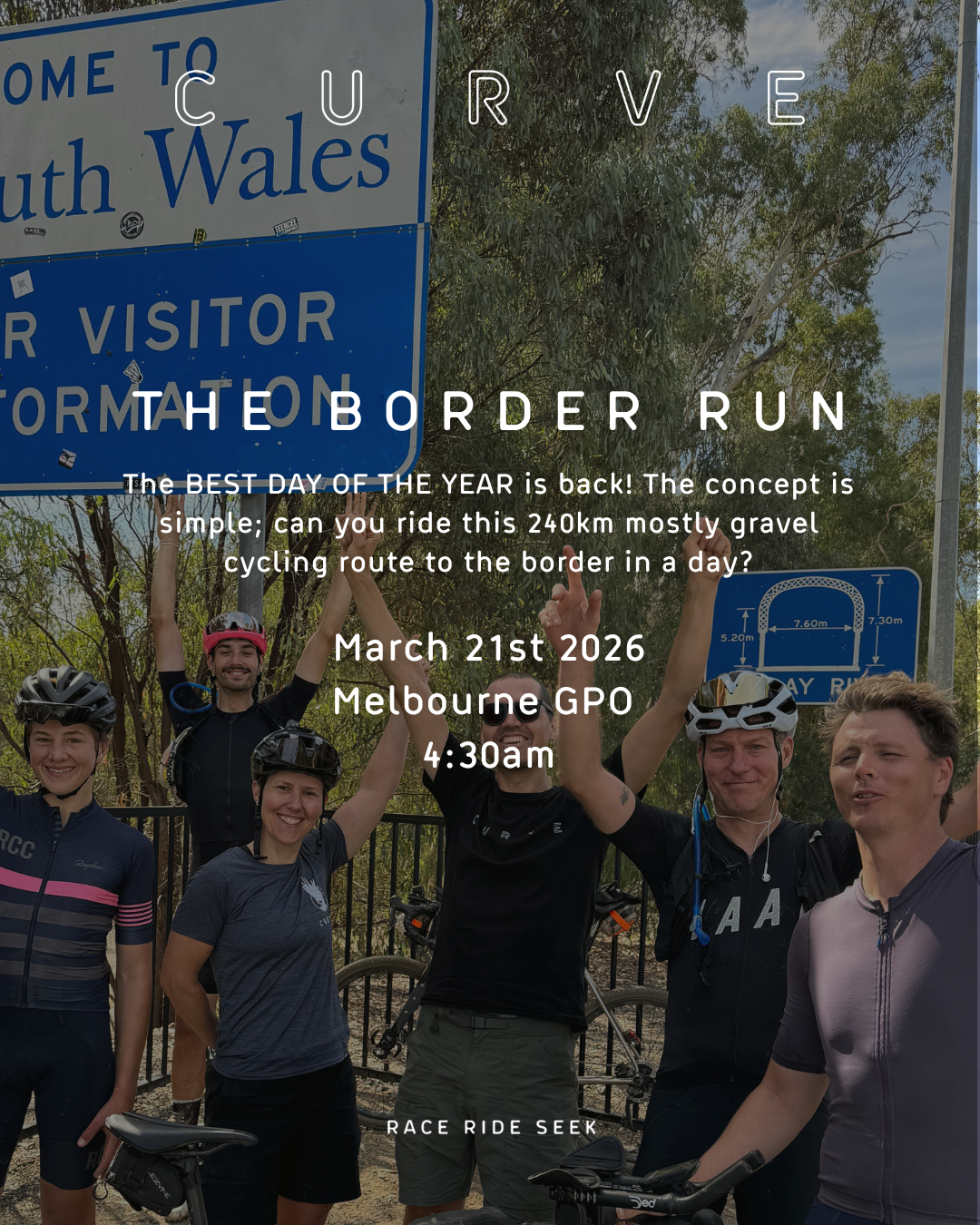 Ride it all in one hit if you dare! Ride it over two, three, four or twenty days. See how fast you can ride it, flashpack it, bikepack it, leave your bike at home and run it. Make your own rules. Slap the border sign to finish your ride across the state! The ride finishes at the Vic-NSW border. Your ride is complete once you tap the “Welcome to New South Wales” sign and take a finisher photo.